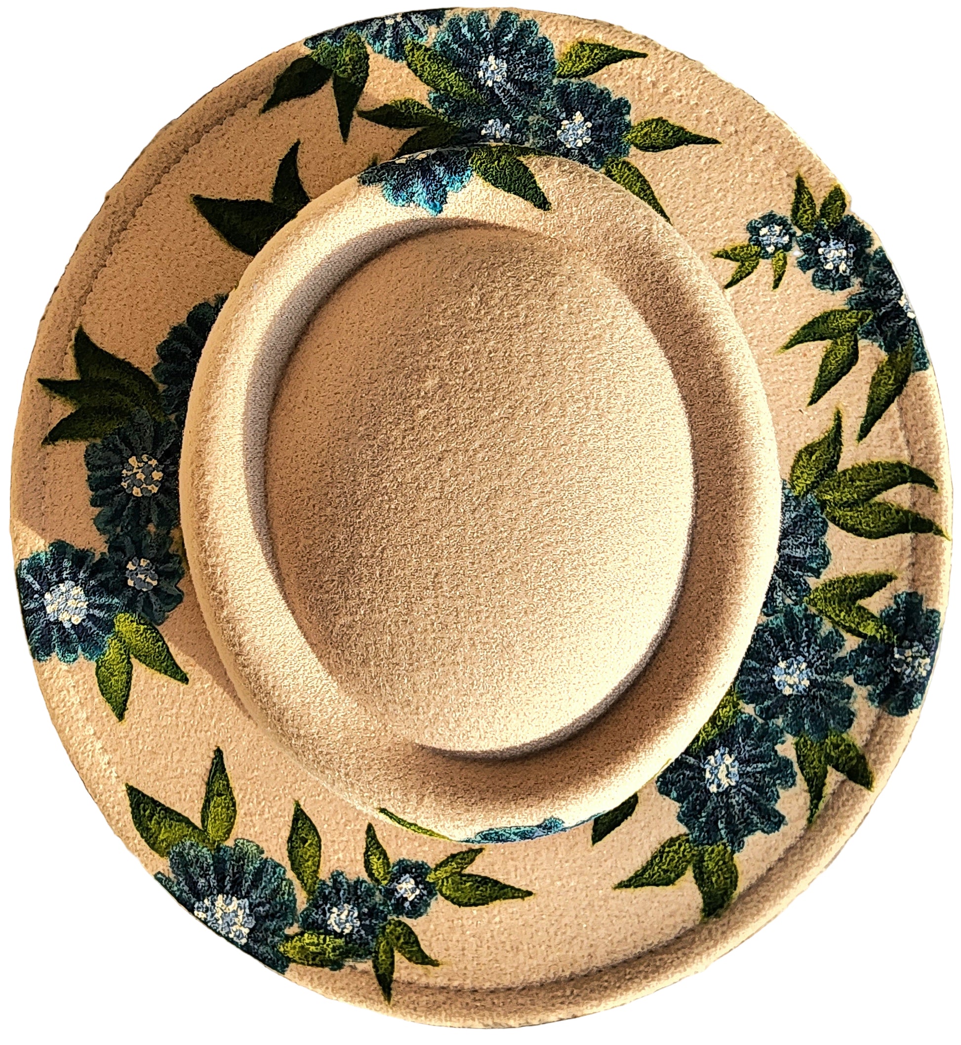 This size adjustable pork pie hat boasts handpainted blue florals, making it a unique and bespoke design. Perfect for spring and summer, here’s your chance to snag it at a discount so you’re ready when the warmer weather returns!